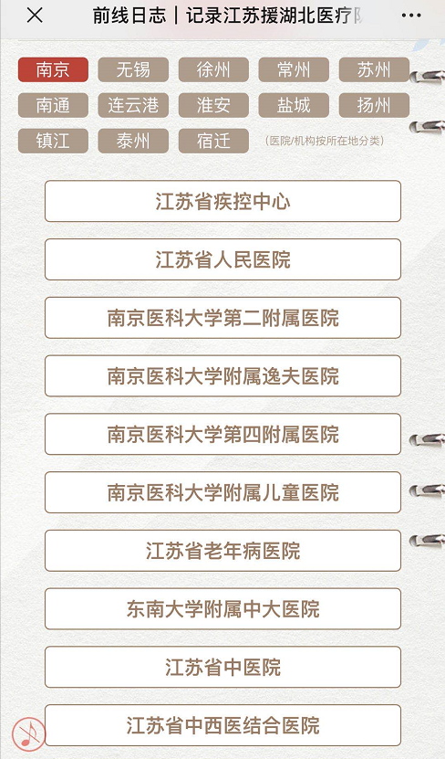 為了能及時(shí)記錄戰(zhàn)“疫”一線的珍貴點(diǎn)滴和難忘瞬間,荔枝新聞團(tuán)隊(duì)策劃制作新媒體互動(dòng)產(chǎn)品——《江蘇援湖北醫(yī)療隊(duì)前線日志》互動(dòng)H5。