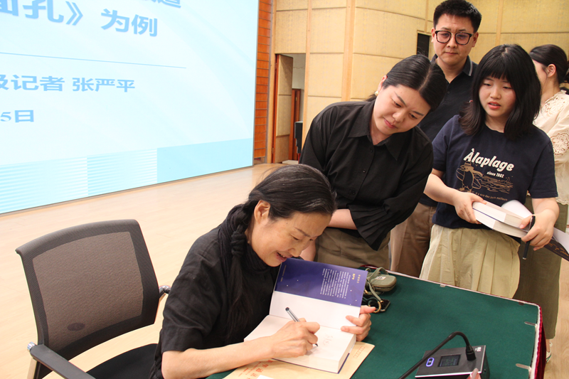 讲座结束后,张严平和现场编辑记者进行了热烈互动,大家争相提问。针对如何写出典型人物的不同,她解答说:“每个人都是不一样的,个性是丰富多彩的,采访中要抱着好奇心和探索心,真正走近每一个人,一定能挖出独特之处。采访人物、探寻一个人的内心和灵魂是一件非常有魅力的事情。”她脸上洋溢着幸福。