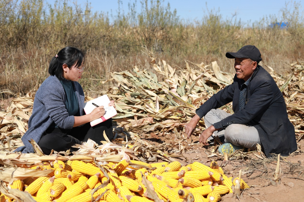 作者在内蒙古鄂尔多斯市伊金霍洛旗阿勒腾席热镇采访,听农牧民讲述丰收的喜悦。