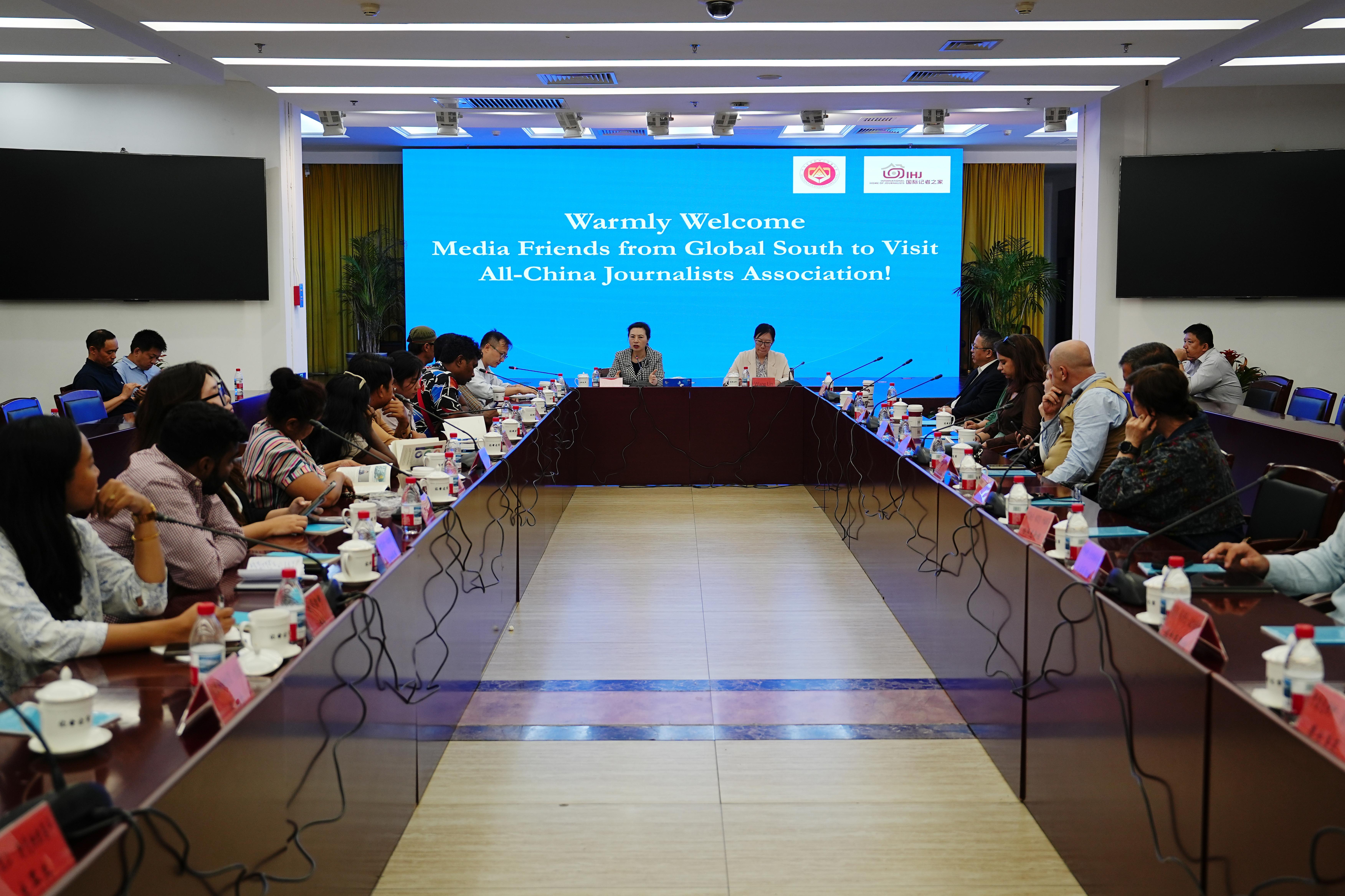 中国记协党组成员、书记处书记吴旭与全球南方国家记者团开展座谈交流。