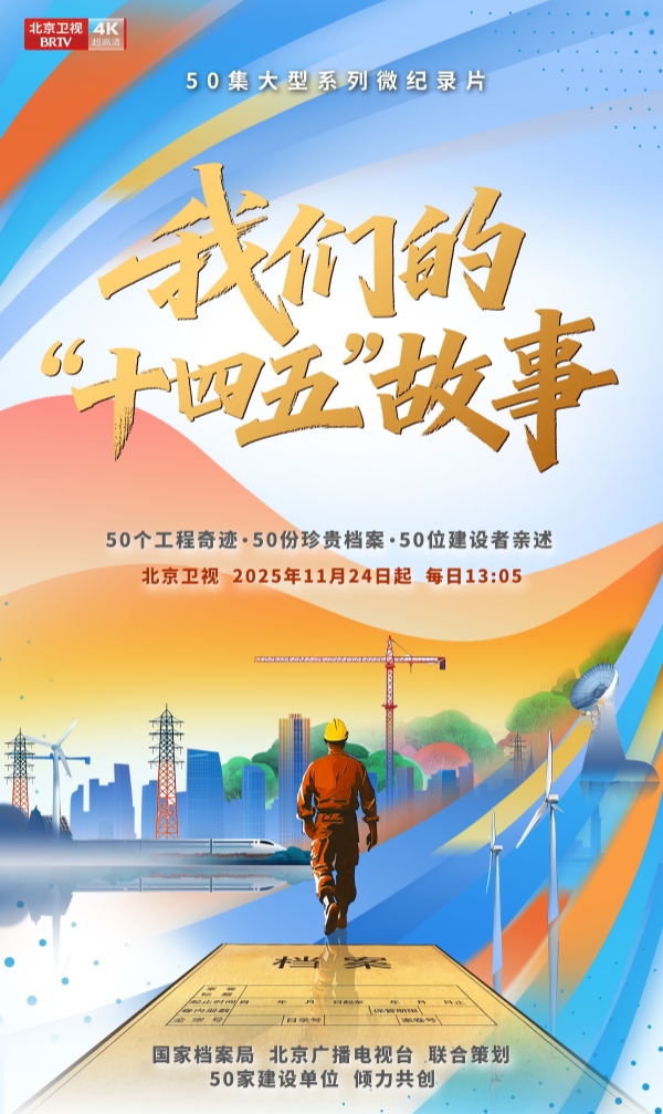 2025年是“十四五”规划收官之年,由国家档案局、北京广播电视台联合策划,50家建设单位倾力共创的50集大型系列微纪录片《我们的“十四五”故事》,于11月24日正式登陆北京卫视,以珍贵档案为媒,全景呈现展现“十四五”期间,党领导人民推进实现中华民族伟大复兴奋斗历史进程中,50个重大建设项目取得的丰硕成果和辉煌成就,讲述建设者敬业奉献、追求卓越、团结协作的感人故事。